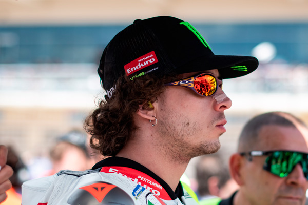 Austin (USA), April 13th 2024 - Marco Bezzecchi crosses the finishing line of the Sprint (race tomorrow at 02.00 pm local time ndr) in Austin in 13th position, riding the Ducati Desmosedici GP of the Pertamina Enduro VR46 Racing Team. Fabio Di Giannantonio was forced to retire immediately after the start due to a technical problem.