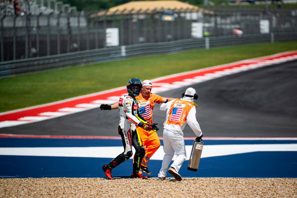 A race with a really complicated start: I started well, but then, in the battle, to avoid Pecco, I suddenly had to brake at turn two. I crashed with Alex Marquez and broke a piece of the fairing. Without a wing, the bike is very unbalanced and I found myself at the back of the group. I struggled, but I managed to recover places. The pace isn't bad and I hope to do better tomorrow.