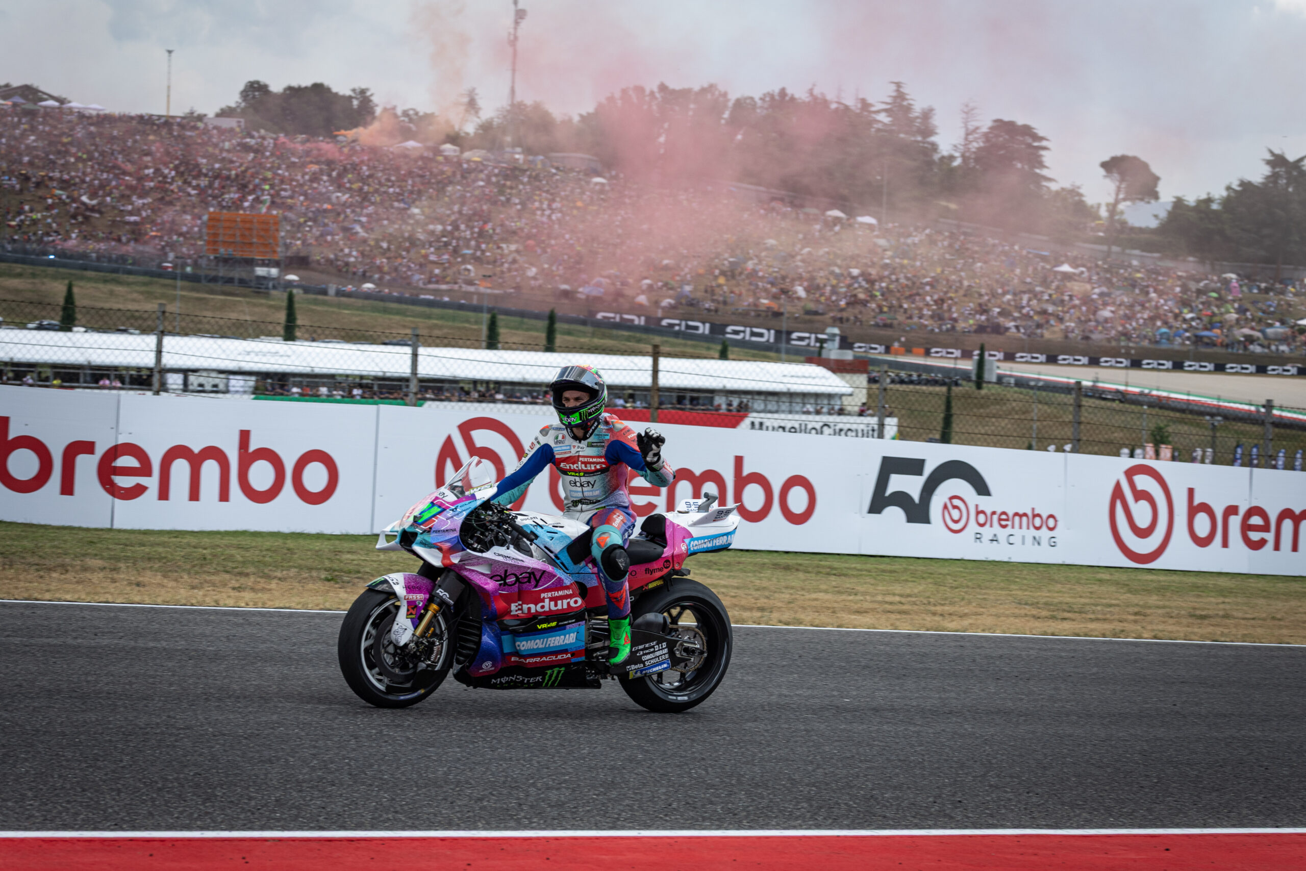 Di Giannantonio started from the third row, and right away he showed a great pace that allowed him to be in the podium fight. Fabio brought the Ducati Desmosedici GP to the third place with a good comeback and amazing overtakes: so, he got his best result in career at Mugello. Fabio is still fifth in the World Standings with 120 points.