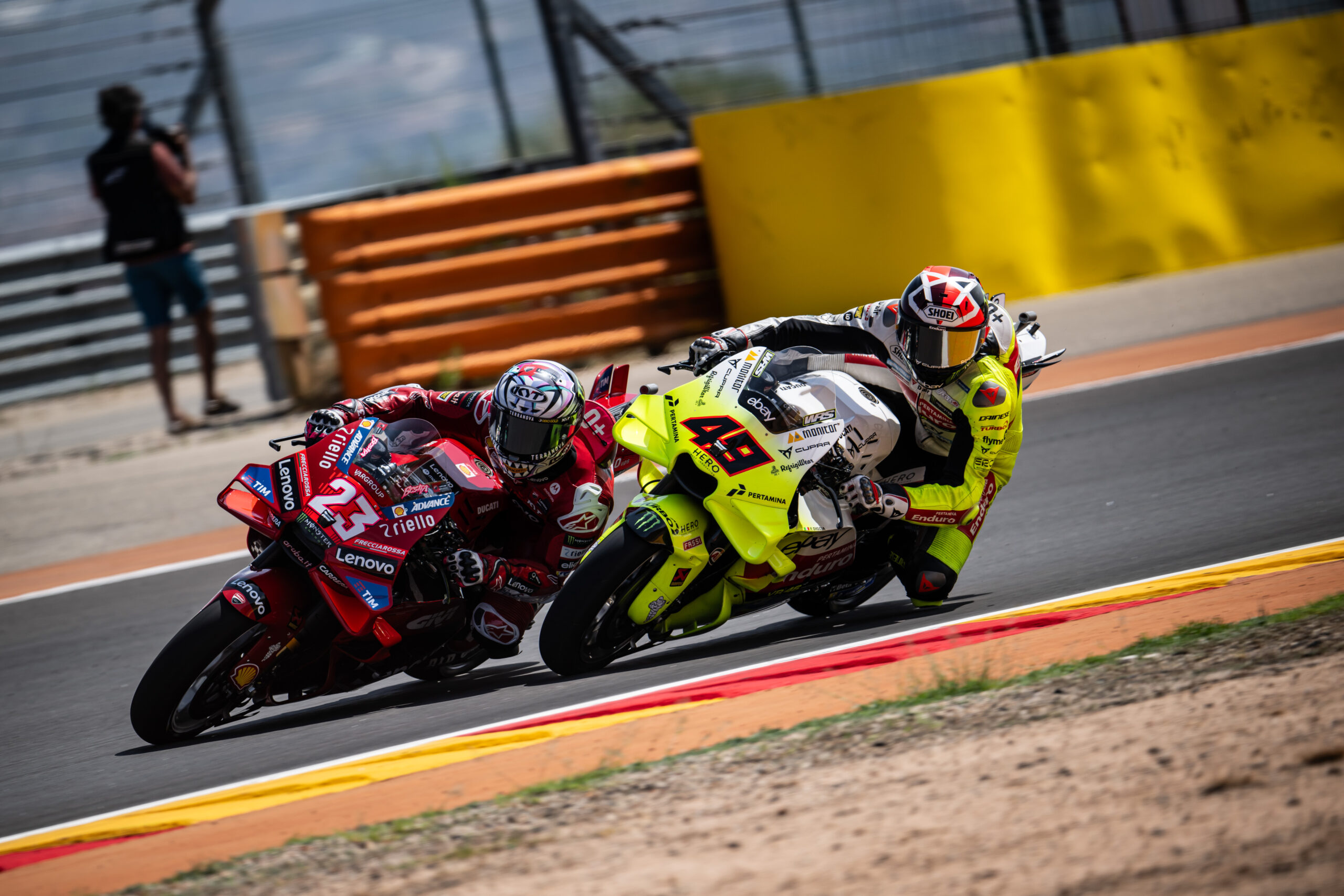 Alcañiz (Spain), September 1st 2024 - A great comeback for both riders of the Pertamina Enduro VR46 Racing Team at the Aragón GP that took place today. Marco Bezzecchi suffers in the final laps and takes the seventh place while Fabio Di Giannantonio, P7 at the finishing line, has to give up a position due to a irregular tire pressure.