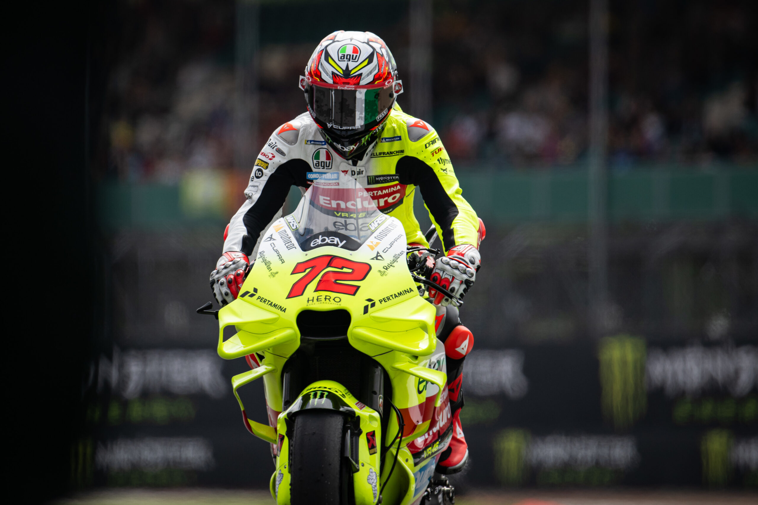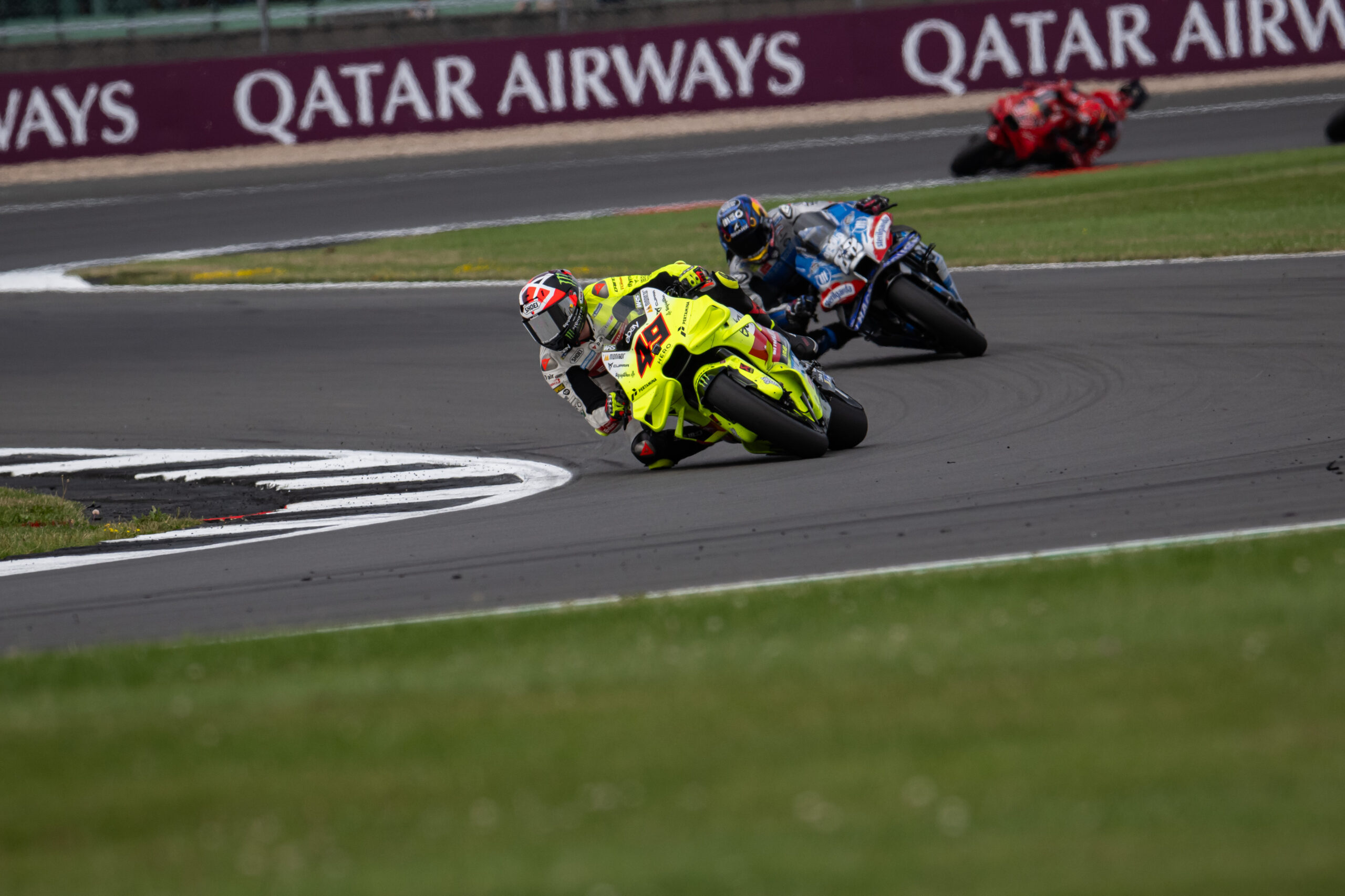 Silverstone (Regno Unito), 3 agosto 2024 – Una Sprint complicata per i piloti del Pertamina Enduro VR46 Racing Team a Silverstone dove domani si correrà il British GP e si celebreranno, con le speciali livree dallo stile retrò, i 75 anni del Campionato del Mondo di Motociclismo. Fabio Di Giannantonio taglia il traguardo al nono posto, costretto invece al ritiro dopo un incidente alla prima curva Marco Bezzecchi.