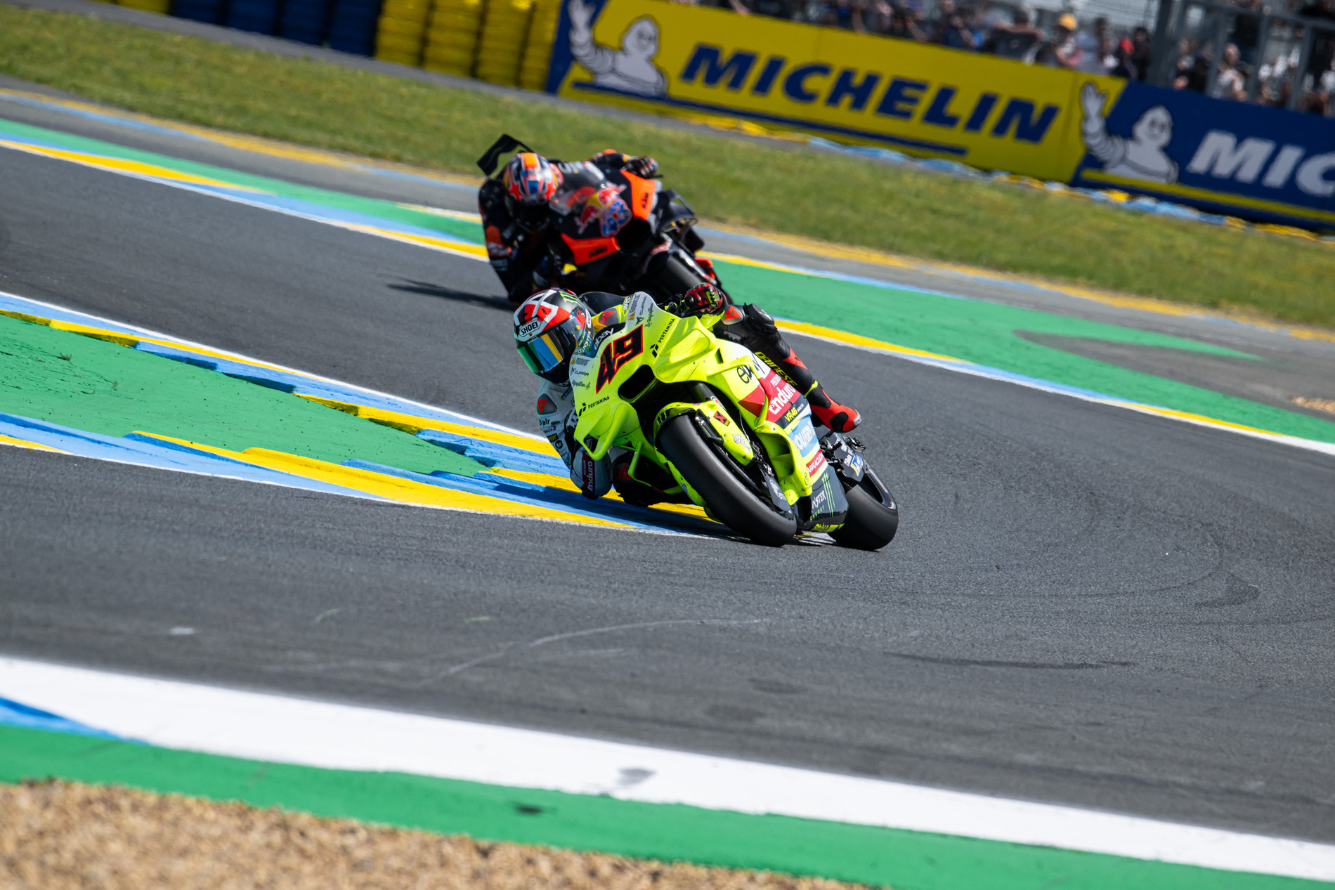Le Mans (Francia), 11 maggio 2024 - Al GP di Francia (domani 02.00 pm locali ndr) Fabio Di Giannantonio taglia il traguardo al settimo posto e conquista i primi punti della stagione nella Sprint in sella alla Ducati Desmosedici GP del Pertamina Enduro VR46 Racing Team. Costretto al ritiro dopo una caduta Marco Bezzecchi quando era sul secondo gradino del podio.